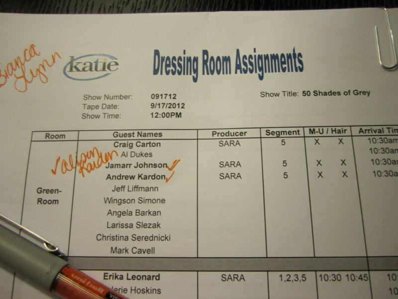 Allie snapped this stage photo while I was still in the Green Room. Notice the blue lights. They switched to red, in honor of Fifty Shades of Grey, when the show started taping.