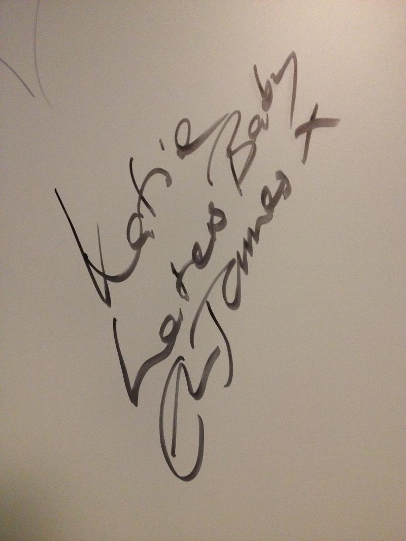 “Katie, Laters, Baby. E L James. X”