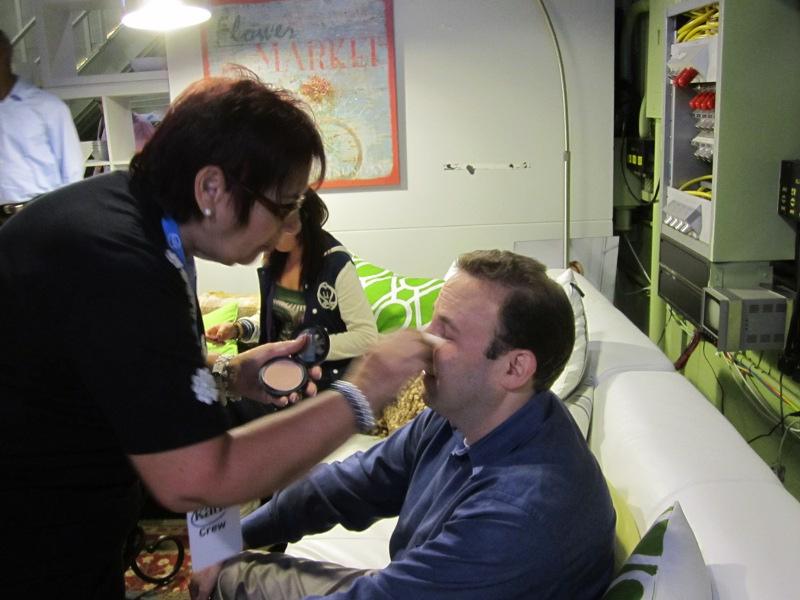 There was definitely a lot of waiting around in the Green Room, especially since the show didn’t start actually taping until noon. As the hour started approaching, the makeup and hair duo (two very nice women, whose names I unfortunately forgot) took care of my frizzy hair and even slapped some powder on my face to cut down on the shine. My wife LOVED what the hair stylist did to my hair and talked with her about  it. Apparently she used something called Magic Move, which is a bit pricey for a small jar, but you use very little, so it should last. With my mega frizzy hair, it’s probably worth it.