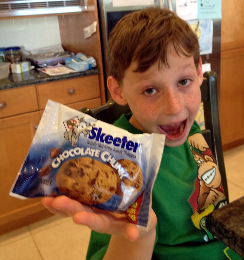 And then we discovered Skeeter Snacks. This new company claims that it makes great-tasting cookies without nuts. Founded by two dads who have kids with allergies, the Skeeter Snacks company takes its no-nuts policy seriously!