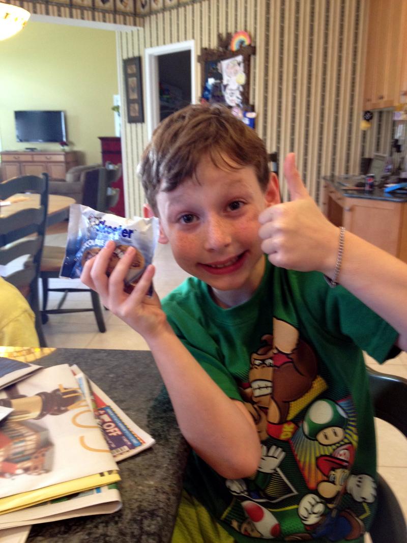 Okay, so I had to sample these, being more than just a tad bit skeptical. And yeah, they’re pretty darn good! They actually taste like the Linden’s cookies I used to get at the school cafeteria when I was a kid. The real test though, would be up to Jason. Would he like them?