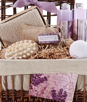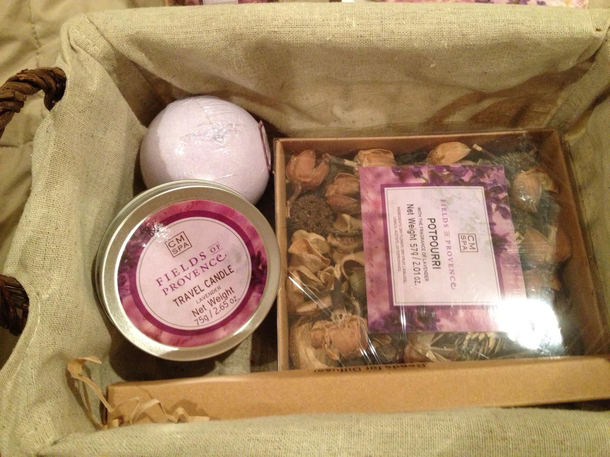 While the first basket deals with your entire body, this one deals with one particular body part: your nose. There’s a lavender-scented candle, potpourri, a fun Bath Bomb Fizzer (My kids love these!) and even Lavender diffuser reeds. There’s also Diffuser Oil and Bath Salts.