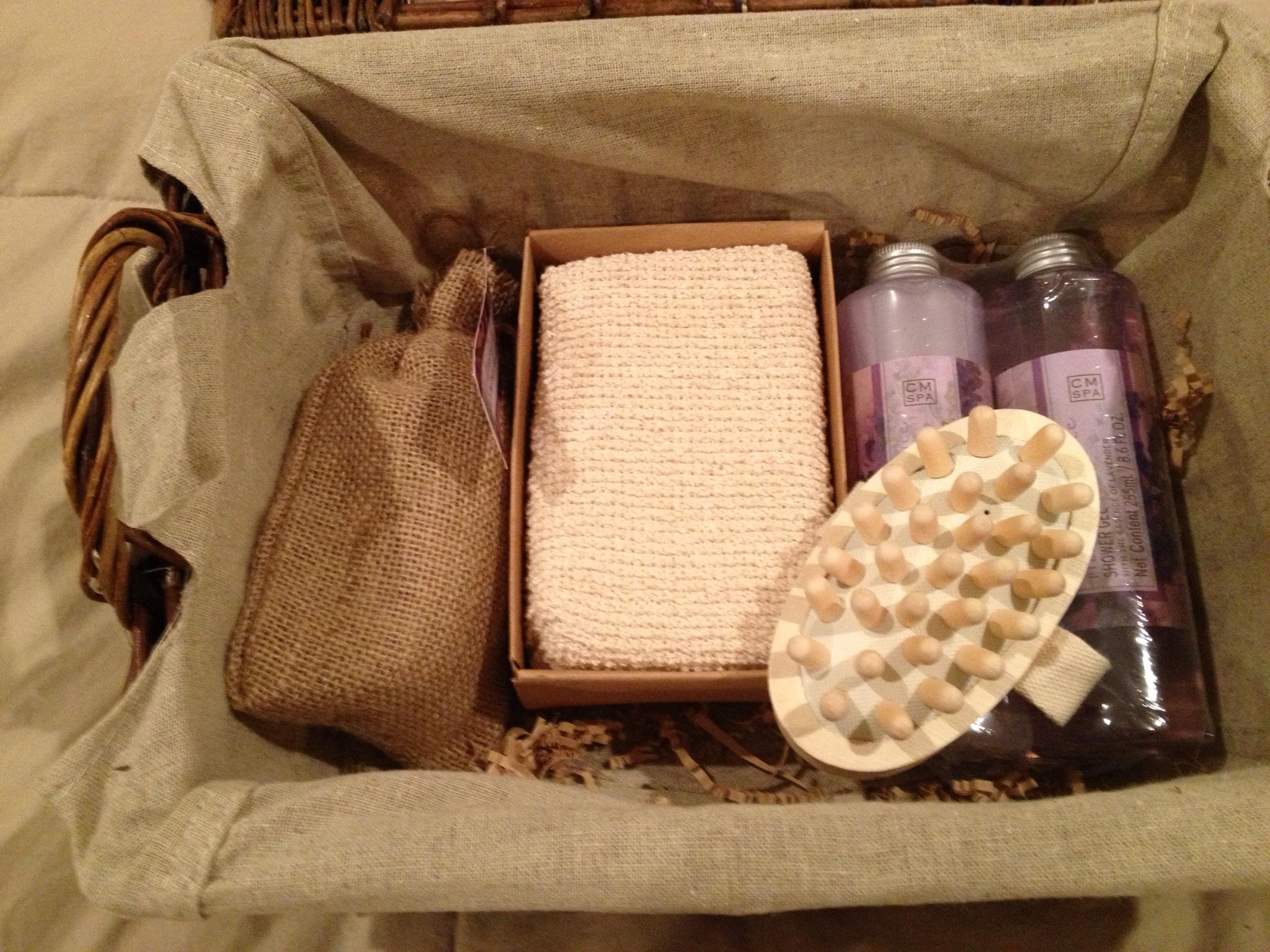 Ooh, a nice loofah and wooden massager, as well as bath gel and bubble bath. Allie will definitely enjoy those, particularly the wooden massager. This basket alone is really nice, but there’s a ton more too in the other basket.